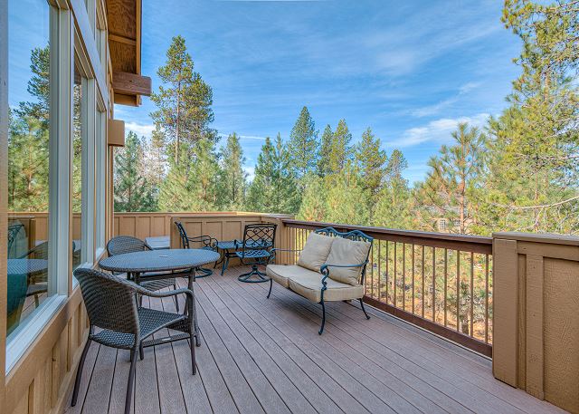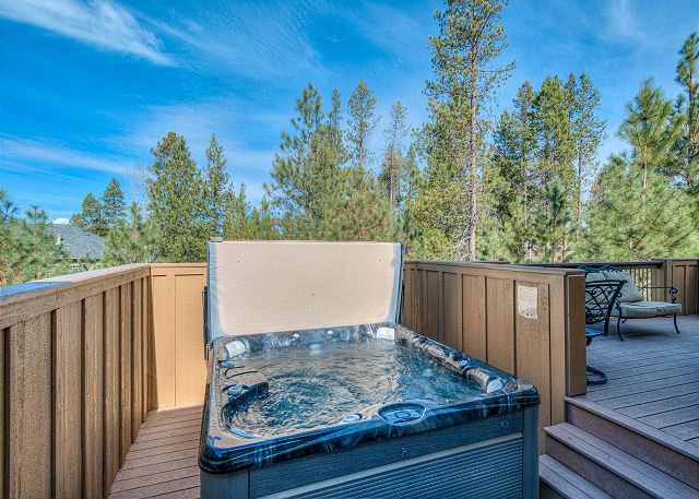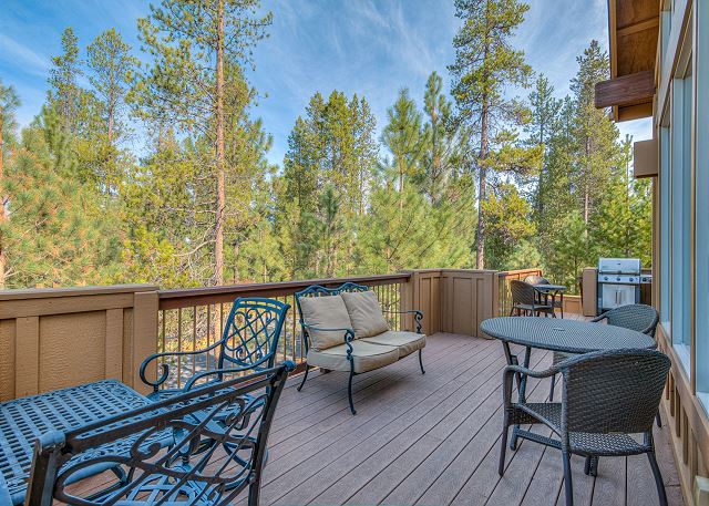 Outdoor living is just as inviting, with a spacious deck designed for relaxation and connection. Enjoy evenings in the private hot tub under the stars or fire up the gas barbecue for outdoor dining surrounded by Sunriver’s serene landscape. This private outdoor space adds an extra layer of comfort to your stay.