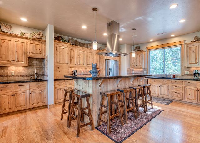 Full Kitchen, Refrigerator, Drip Coffee Maker, Keurig Coffee Maker, Microwave, Toaster, Cookware, Blender, Crock Pot, Dishwasher, Pantry items, Oven, Kitchen Island, Kettle, Stove, Griddle, Waffle Maker, Dishes & Utensils for Kids, Kitchen towels, Hot Pads, Roasting Pan, Hand Mixer, Can Opener, Bakeware