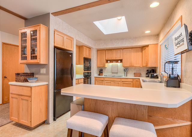 Full Kitchen, Refrigerator, Drip Coffee Maker, Microwave, Toaster, Cookware, Blender, Crock Pot, Dishwasher, Oven, Kettle, Stove, Highchair, Griddle, Waffle Maker, Kitchen towels, Hot Pads, Roasting Pan, Hand Mixer, Can Opener, Air Fryer, Rice Cooker, Bakeware