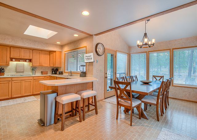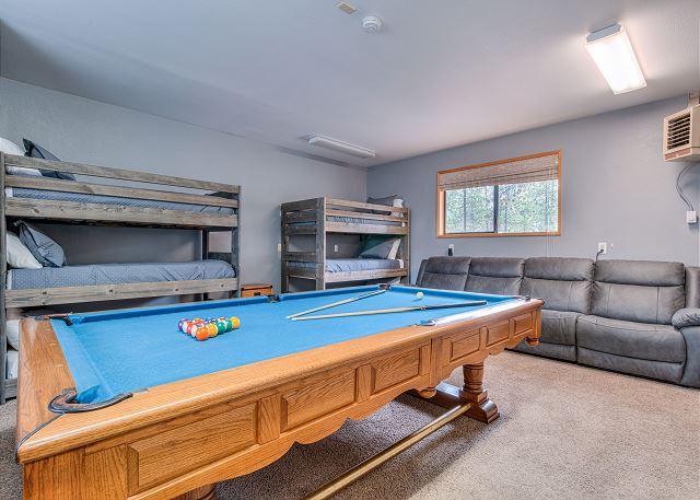 Sleeps 12, 2 sets of bunks in same room with sleeper sofa are triple bunks not just doubles., 1 loft, 8 dining seats, 2 car garage
