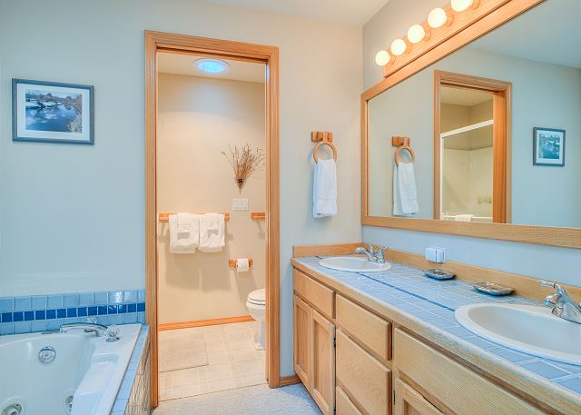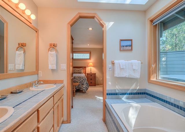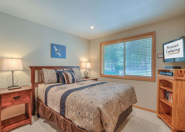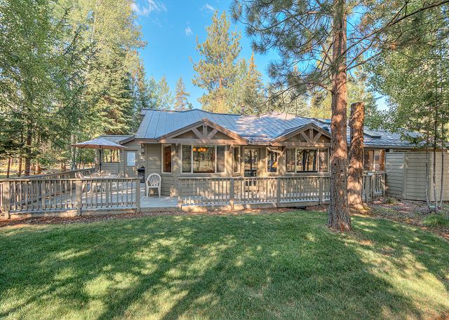 This single-level, 1,653-square-foot home comfortably accommodates guests with one king bed, two queen beds, and a sleeper sofa in the living room. Additional amenities include air conditioning, high-speed WiFi, a dishwasher, washer and dryer, microwave, multiple TVs, a gas fireplace, private hot tub, Jacuzzi tub in the primary suite, gas BBQ, six bikes, ping-pong table, and a double-car garage. Please note that pets are not allowed at this property. Whistling Swan Lane #2 offers the perfect balance of relaxation, recreation, and convenience for an unforgettable Sunriver vacation.