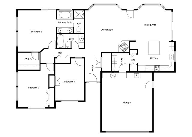 Full Kitchen, Refrigerator, Drip Coffee Maker, Microwave, Toaster, Cookware, Blender, Dishwasher, Oven, Stove, Kitchen towels, Hot Pads, Can Opener, Air Fryer