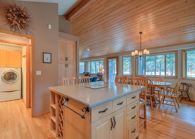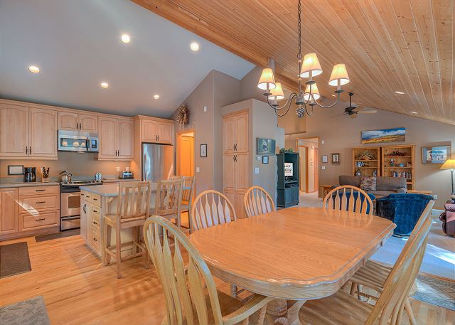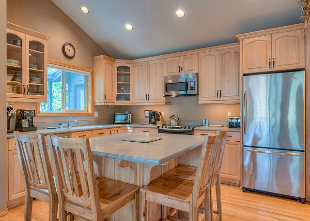 The kitchen is both spacious and beautifully designed, featuring custom cabinetry, stainless steel appliances, and a full selection of cookware and utensils. Whether preparing a quick breakfast or a full dinner, the kitchen is fully equipped to make cooking during your stay easy and enjoyable.
