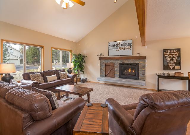 3 California Kings,1 Twin/Double Bunk, 1 HAB, 3 TVs/2 VCRs, 3 DVD players, foosball table, 1 Pack-n-Play, 1 High Chair, D/W, W/D, microwave, 2 levels, gas fireplace, HOT TUB, gas BBQ, garage, 5 bikes, 2090 sq ft