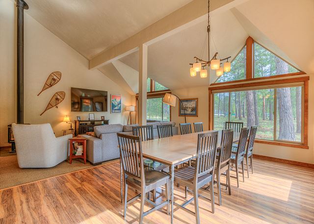 After a long day, relax next to the wood stove and enjoy a movie on the large-screen TV. For ultimate relaxation, unwind in the private hot tub and stargaze after a day on the slopes of Mt. Bachelor.