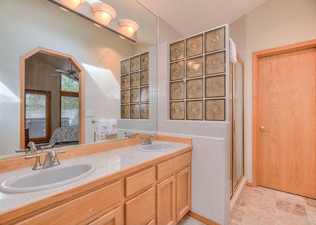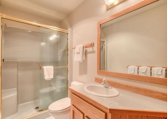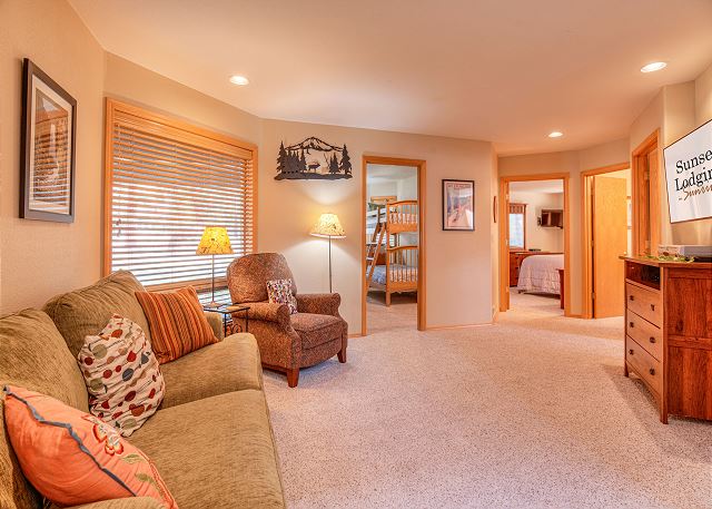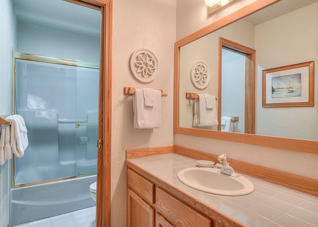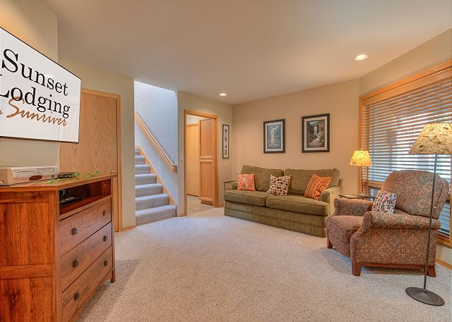 Downstairs, the second family room offers another large flat-screen TV and a hide-a-bed for extra sleeping space. Three more bedrooms provide plenty of room for everyone: